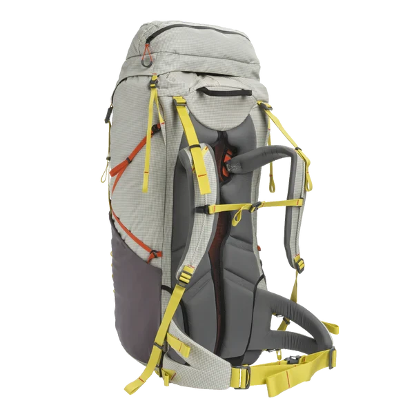 - 63L multiday pack with adjustable fit through custom frame sheet and shoulder straps that deliver positive load transfer for more balance on the trail