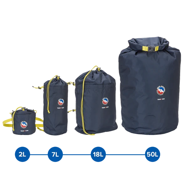 - 50L: Oversized for large groups and car camping – featuring stiffeners to maintain open shape for easy disposal of trash and external buckled strap for attachment