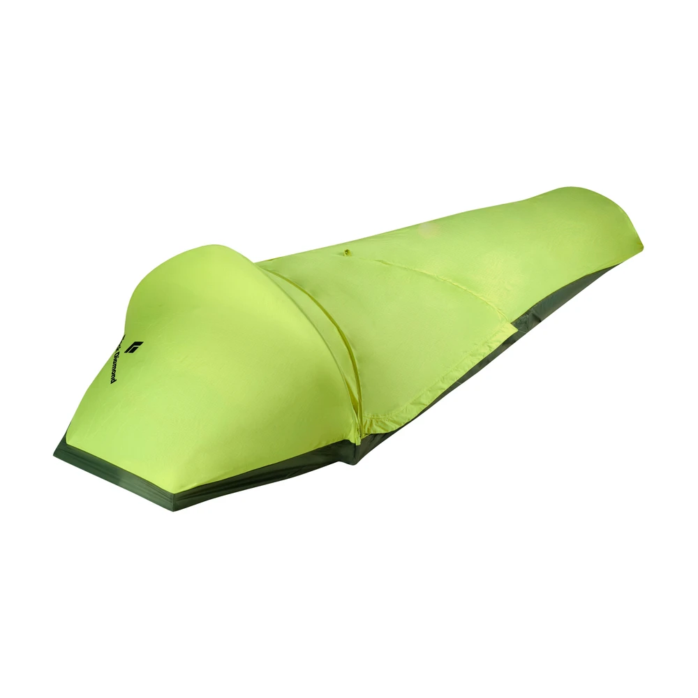 The Black Diamond Spotlight bivy is designed for the gram-counting minimalist who values some added comfort, with a single DAC Featherlite® pole providing extra room over the head and shoulders. It has a large zippered entry and a large mesh panel with an awning for excellent ventilation.