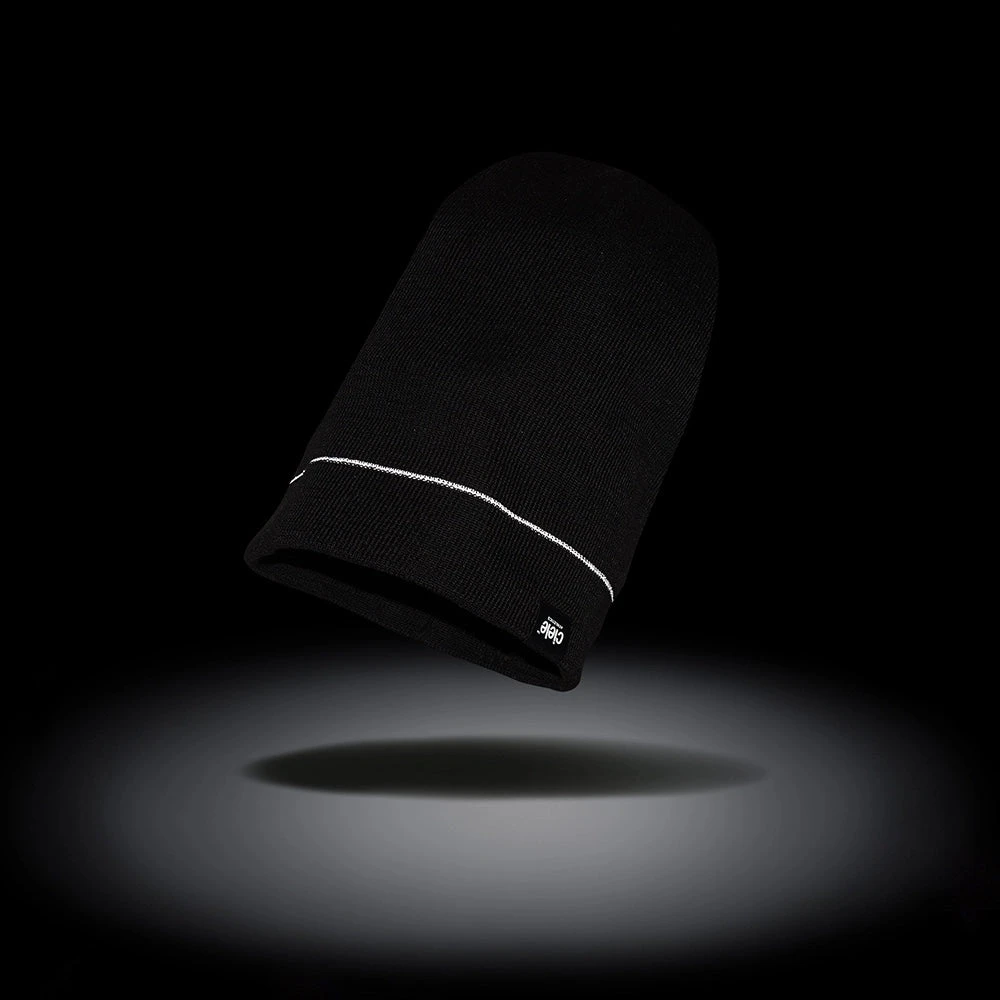 the double layer reversible CR2Beanie – Shadowcast for those really cold run commutes and cozy post run coffee stops. featuring tight knit durable recycled polyester yarns as well as reflective yarns for dusk to dawn visibility.