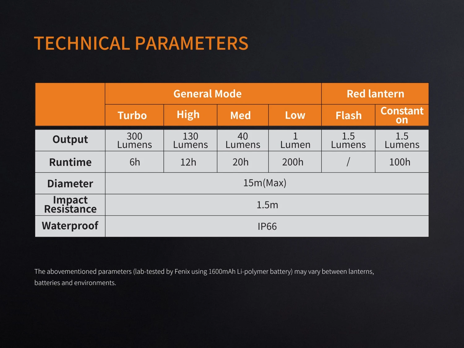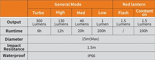 | Max output | 300 lumens |
