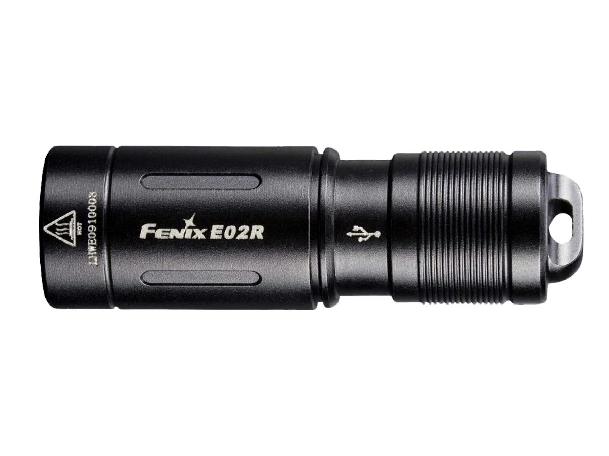 The Fenix E02R Flashlight is a rechargeable flashlight that can emit up to 200 lumens from its built-in 120mAh li-polymer battery. Fully rechargeable via a built in micro-USB charging port, this flashlight has a maximum runtime of 6 hours and 30 minutes. Access two brightness levels with a quick twist of the head. At less than 2” long and just over a half of an inch round, this little flashlight is built tough with an IP68 dustproof and waterproof rating. Super small and compact, this keychain flashlight is a great choice for every day carry.