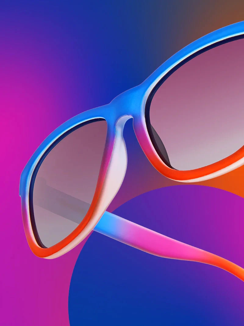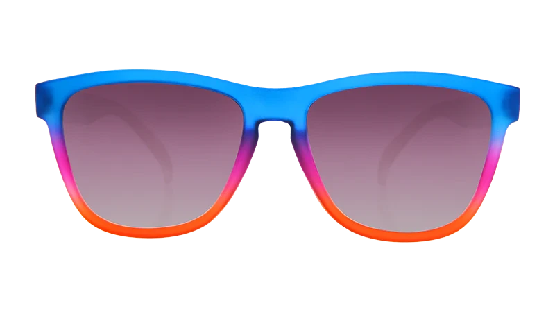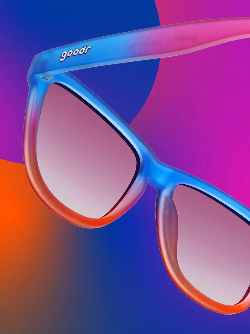 A firecracker popsicle sunrise with cotton candy clouds. Do you ever wake up on a camping trip and wonder if a diabolical carnival clown with a wicked sweet tooth painted the sky while you slept?! These Pure Sky Candy sunnies inspired by nature’s most saccharine sunrises will make you suspect it was. (We swear we weren’t high when we wrote this. Not that we’re against a wake & bake… baking cookies that is!!!)