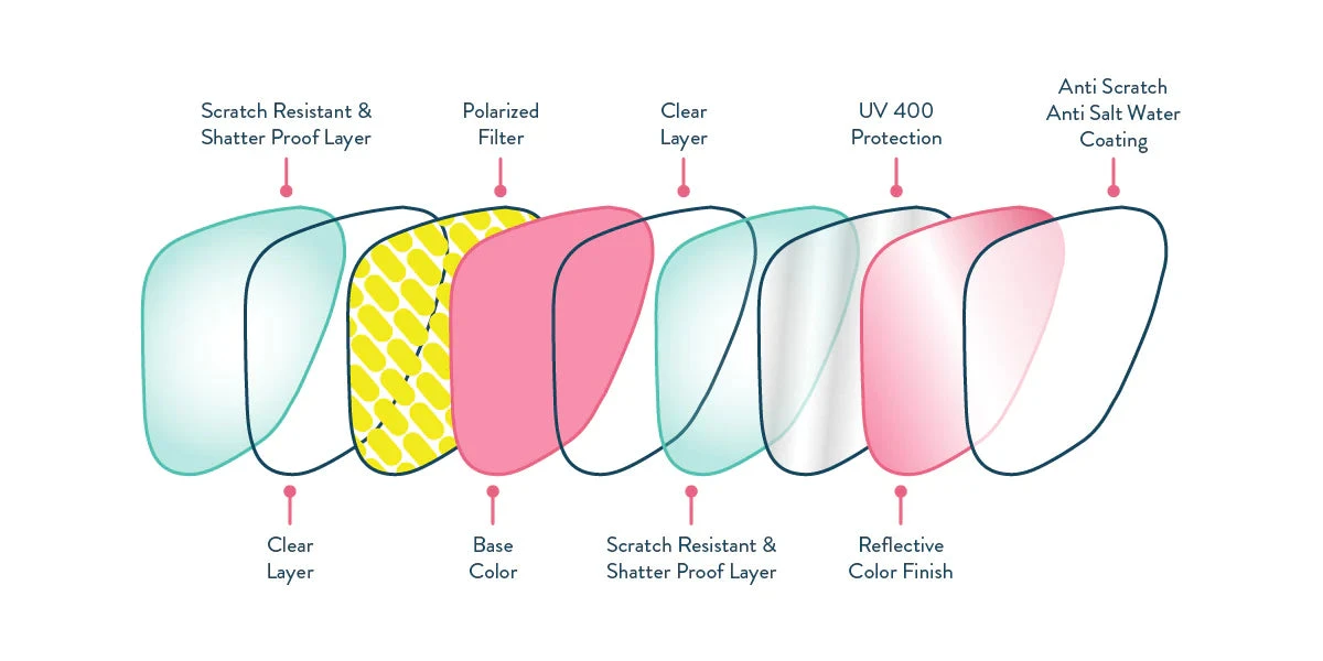 Glare-reducing, polarized lenses and UV400 protection that blocks 100% of those harmful UVA and UVB rays.