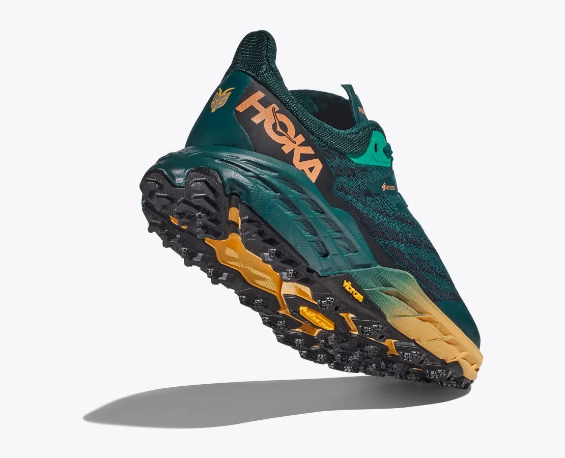 The same waterproof versatility of the Speedgoat 5 GTX, just reinforced with a supportive heel collar.
