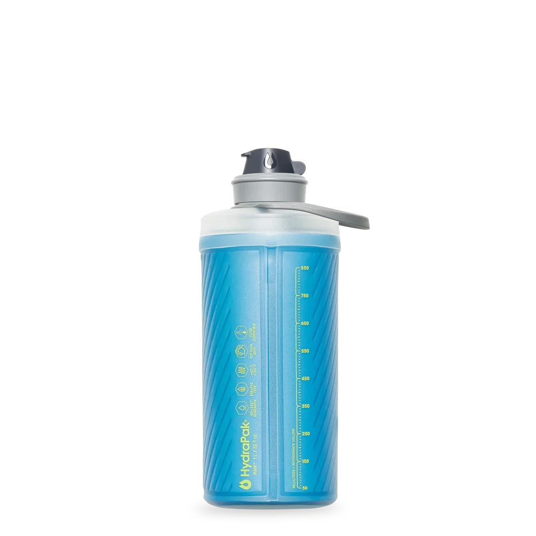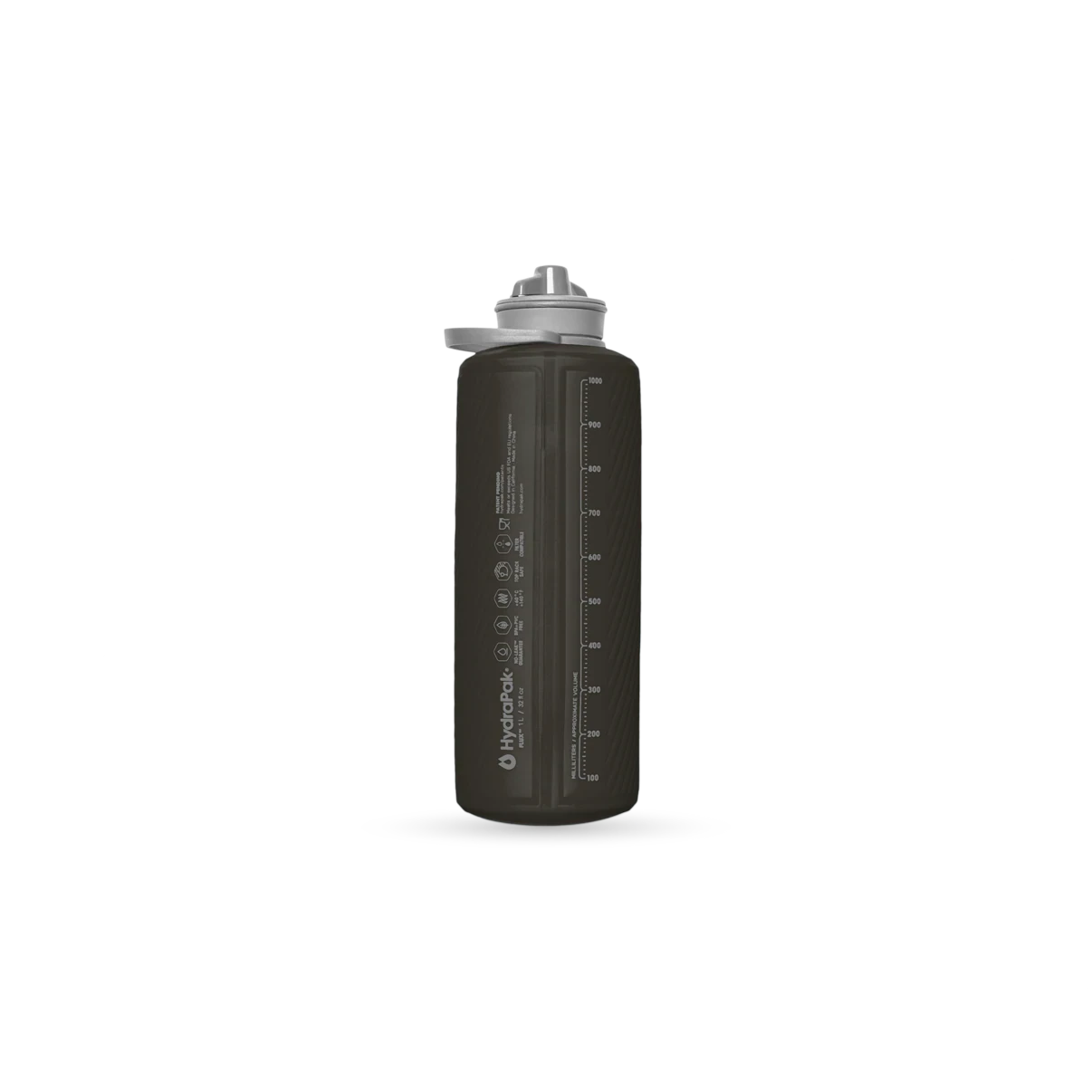 Flexible bottles get an upgrade. The Flux is shaped like a hard bottle, compresses like a soft flask, and cuts weight by 60 percent. Topped with a spill-proof twist cap for grab-and-go hydration, plus a bail handle to keep hydration secure in your hand or on your pack. Finish your drink, and this bottle packs down to earn its space in your pack. With the Flux, innovation fuels performance.