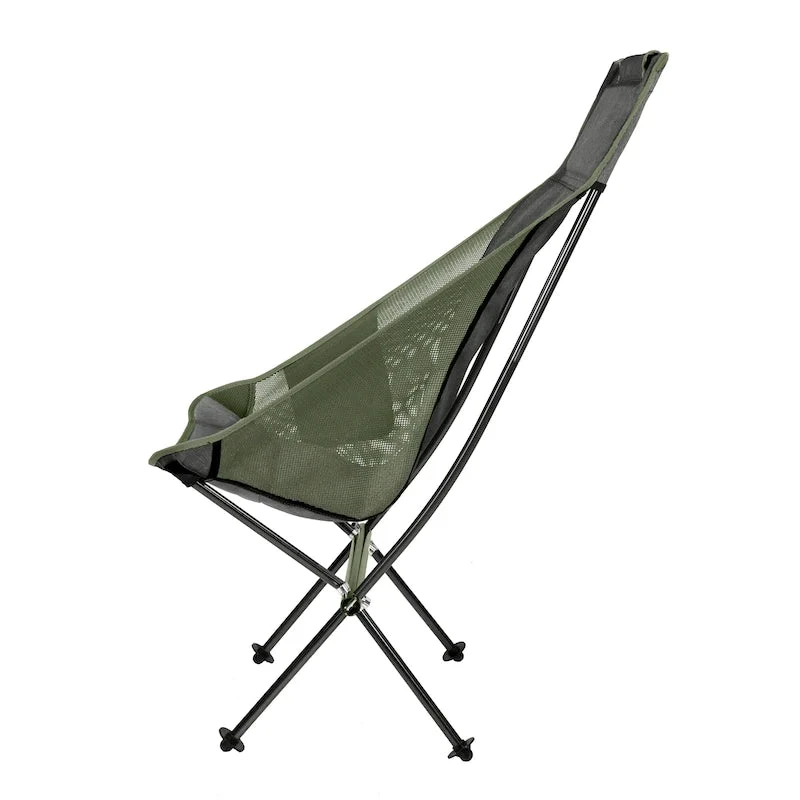 The Klymit portable lightweight and folding Ridgeline Camp Chair features a high back with a padded headrest and a seat engineered to comfortably cradle and support your body. The chair is lightweight and durable with vented mesh panels for breathability.