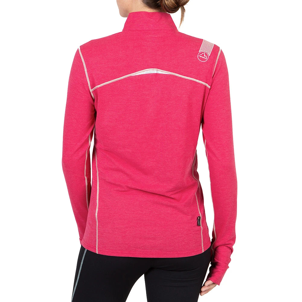 Our long sleeve running shirt with a quarter zip, thumbholes, and high neck. Perfect for any run where you need moisture wicking performance and a little extra warmth.