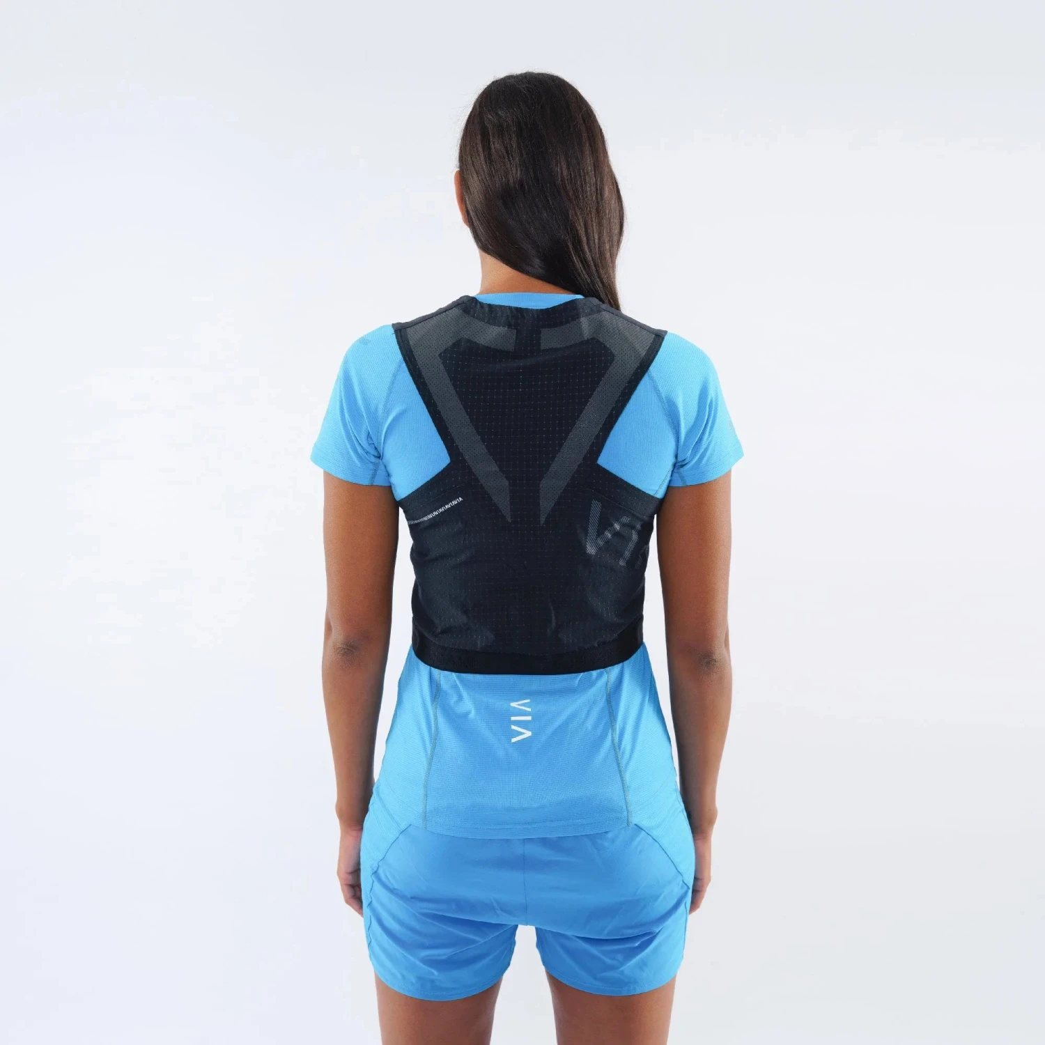 Anatomically fitted vest for carrying the essentials when racing or training hard.