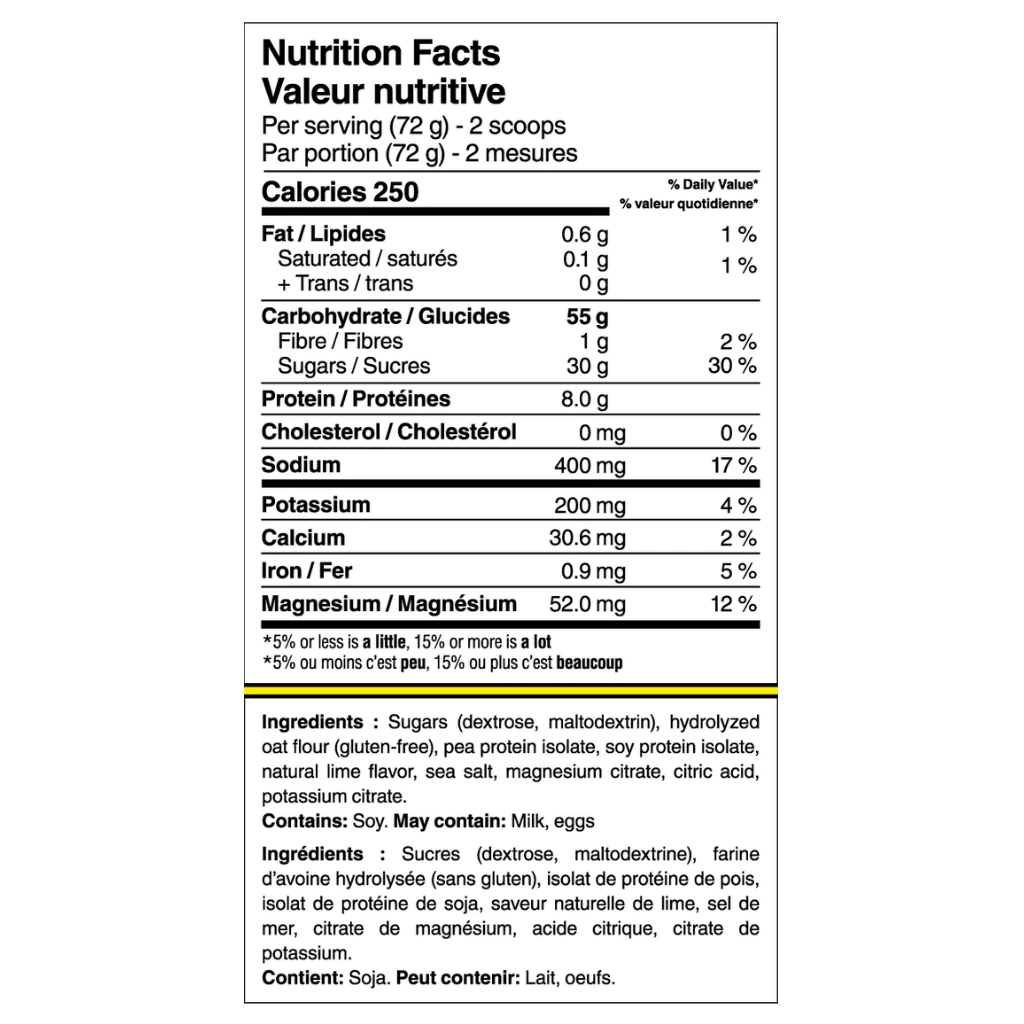 Ingredients: Sugars (dextrose, maltodextrin), hydrolyzed oat flour(gluten-free), pea protein isolate, soy protein isolate, natural watermelon flavor, sea salt, magnesium citrate, citric acid, potassium citrate.