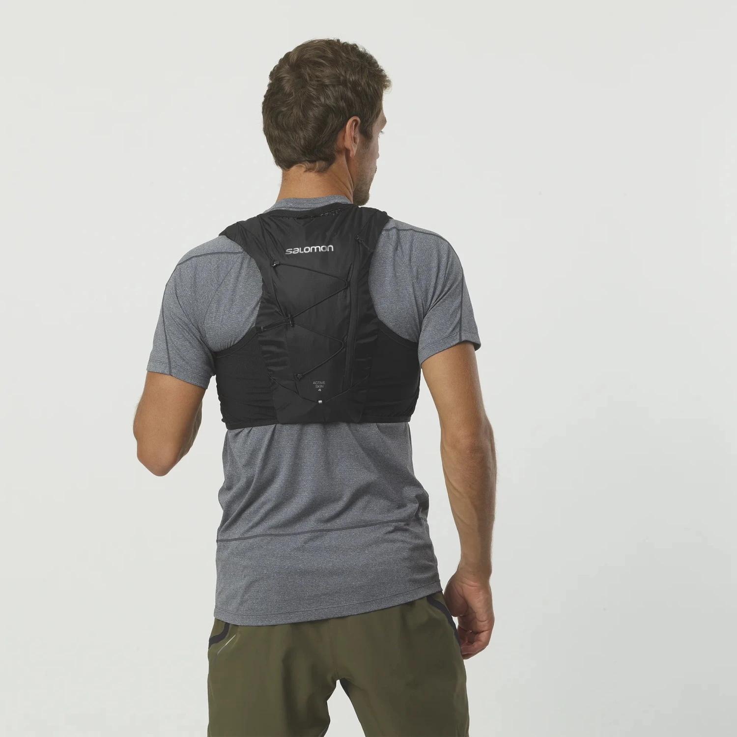 Featuring two strategic chest pockets for quick, on-the-go hydration. Two 500ml flasks included, also compatible with a 1.5 L bladder.