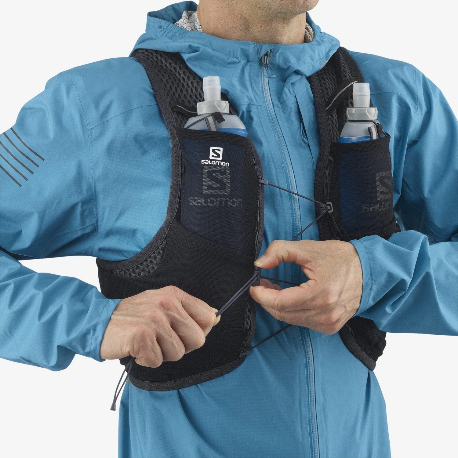With two strategic chest pockets and 500ml Salomon flasks, it’s easy to quench your thirst even when the going gets tough. Compatible with a 1.5-liter hydration bladder.