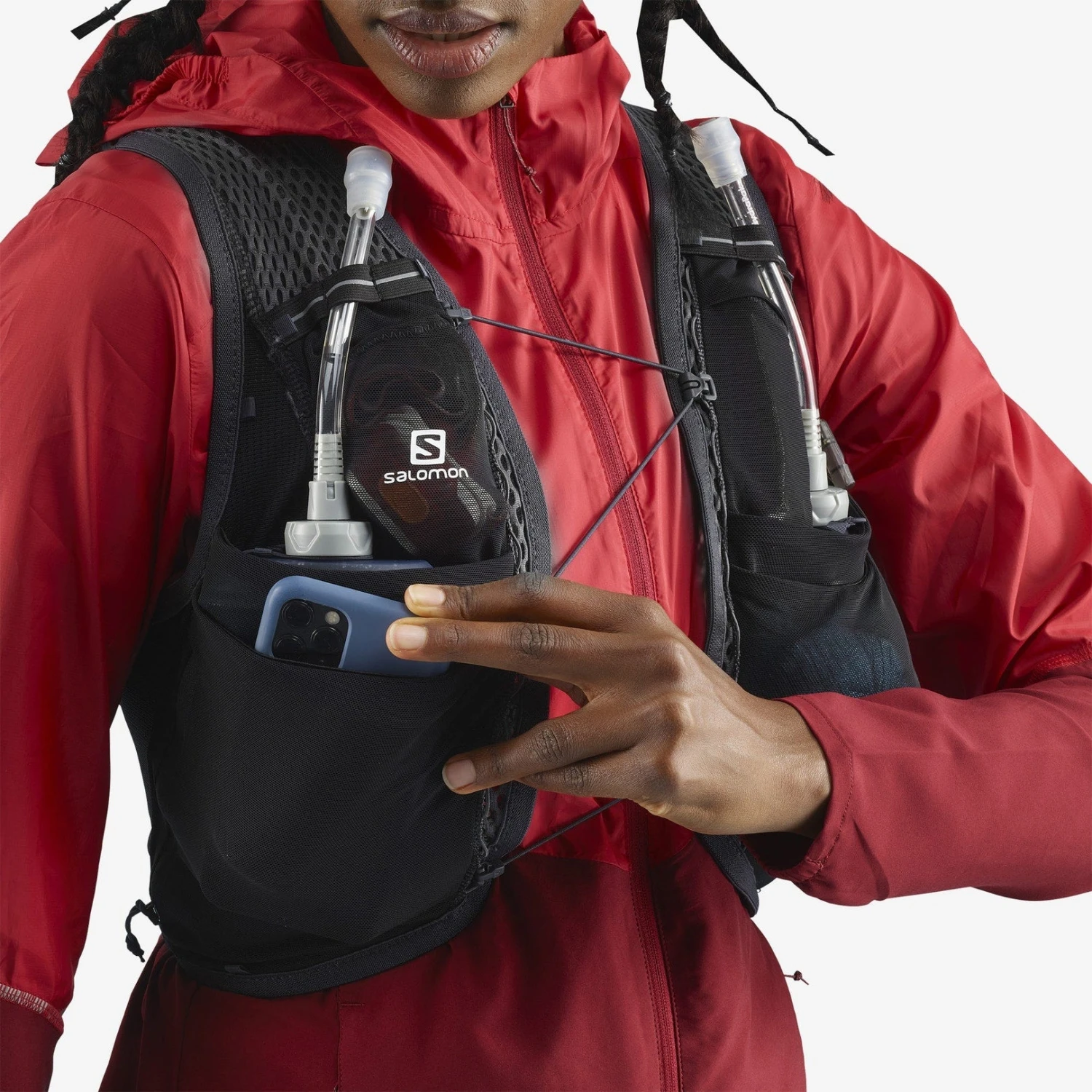 With two strategic chest pockets and two 500ml Salomon flasks, it’s easy to quench your thirst even when the going gets tough. Compatible with a 1.5-liter hydration bladder.
