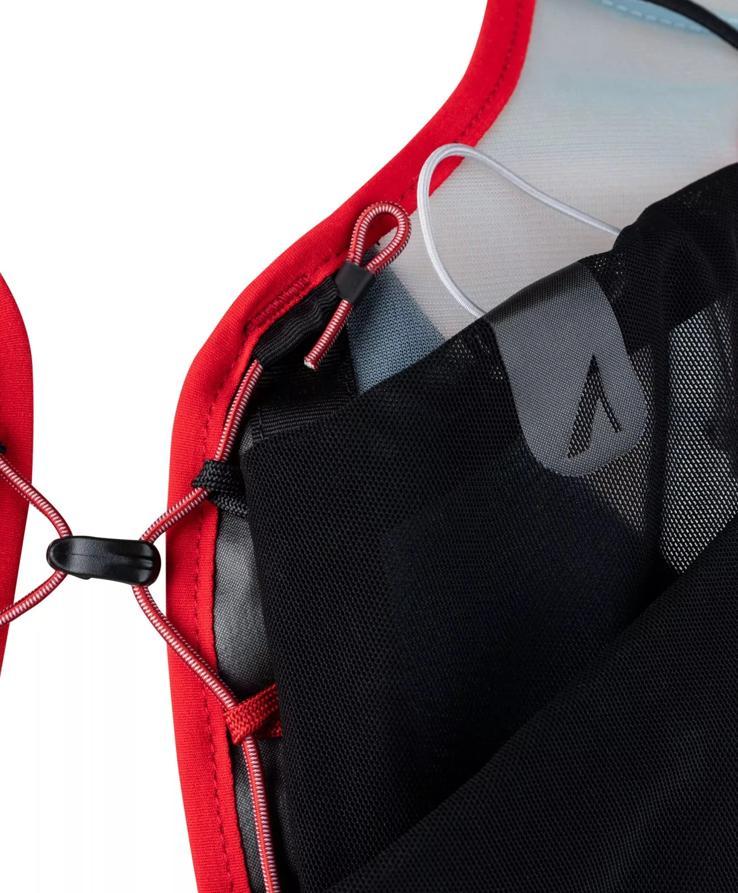 The Big Bronco Race Vest is a 12 liter pack built in collaboration with UltrAspire Elite Athlete and champion ultramarathoner Jeff Browning. The Big Bronco is designed to highlight all of the features of the Bronco race vest but with expanded capacity and accessibility. This vest has a total of 7 accessible pockets on the go, and is capable of carrying 4 bottles and a 2 liter reservoir. While two of those bottles can be stored in front , our signature bottle-in-the-back Fluidic Holster System ensures access to the rear pockets is intuitive and easy. The rear pockets have a divider which helps to organize your gear and 2 large gussets add capacity. The main back compartment was designed to lay flat when empty while its 4-way stretch mesh can expand to accommodate a large capacity. A soft foam flare on the back serves as a guide, making rear compartment access easy. Z-pole attachments have been added and are accessible left or right handed on the go, and these attachments can also function as compression for the Fluidic Holster compartments. The front harness features 4 pockets and the MaxO2 Form adjustable closure system. Like all UltrAspire packs, this vest features an ErgoFit™ design for long term comfort.