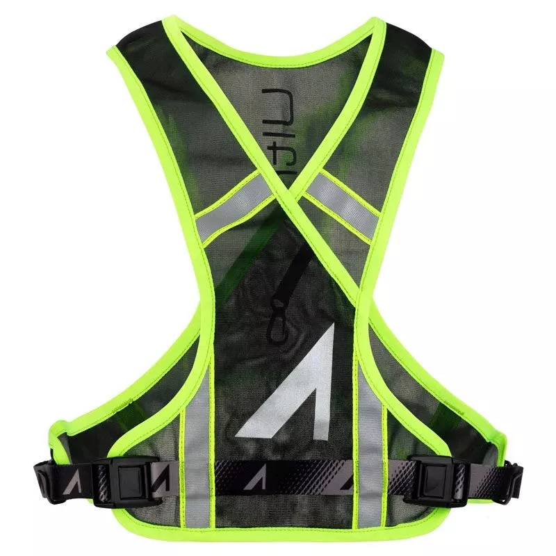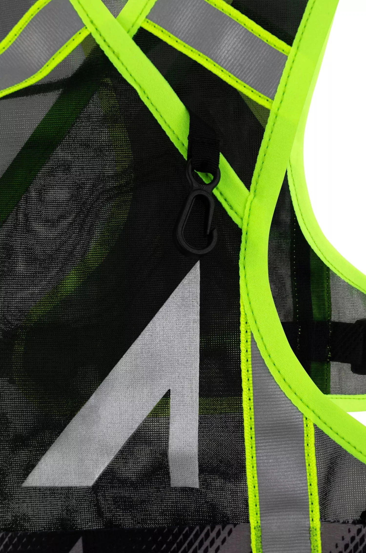 The Neon Reflective Vest is an extremely minimalist piece that accommodates capacity for the essentials, comfort for any distance, and brilliant 360° reflectivity. This vest features our patented Ergo X Harness which is an over-the-head securing system that places capacity on the body’s natural load bearing positions and keeps the soft tissue areas free from restriction. A front pocket allows you to carry any size cell phone or a water bottle. The inside of the pocket also contains a key clip. Soft perimeter binding keeps contact with the skin comfortable during long runs. Reflective details are strategically placed on all sides of the vest for high reflectivity from any direction. In addition to passive lighting, this vest has an attachment on the front that is compatible with the Lumen Clip 180 to create more visibility or to light the terrain ahead of you. One size fits most.