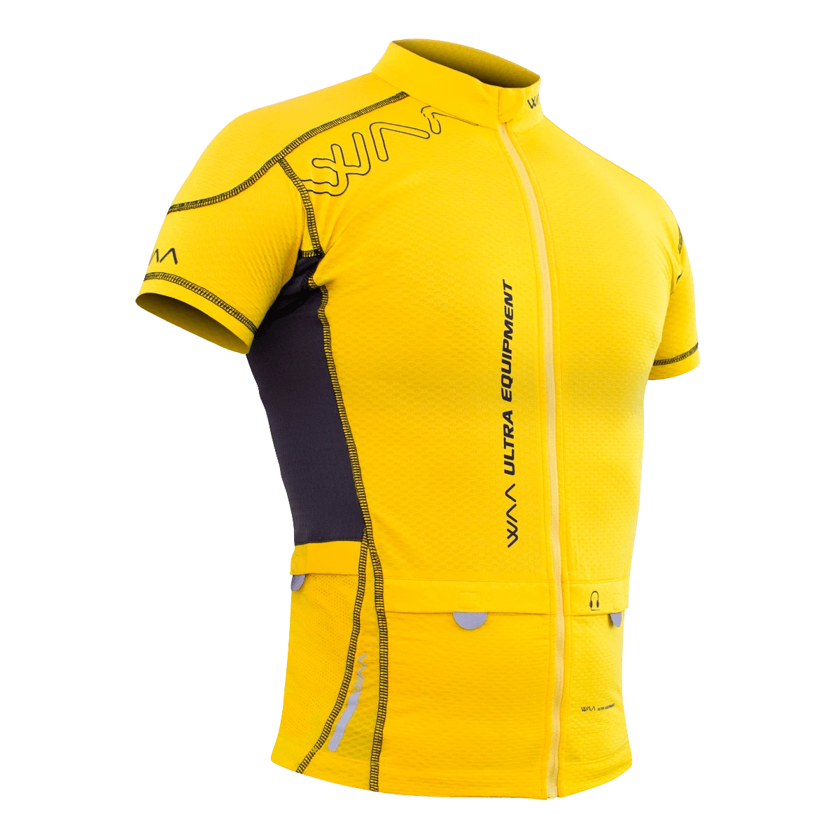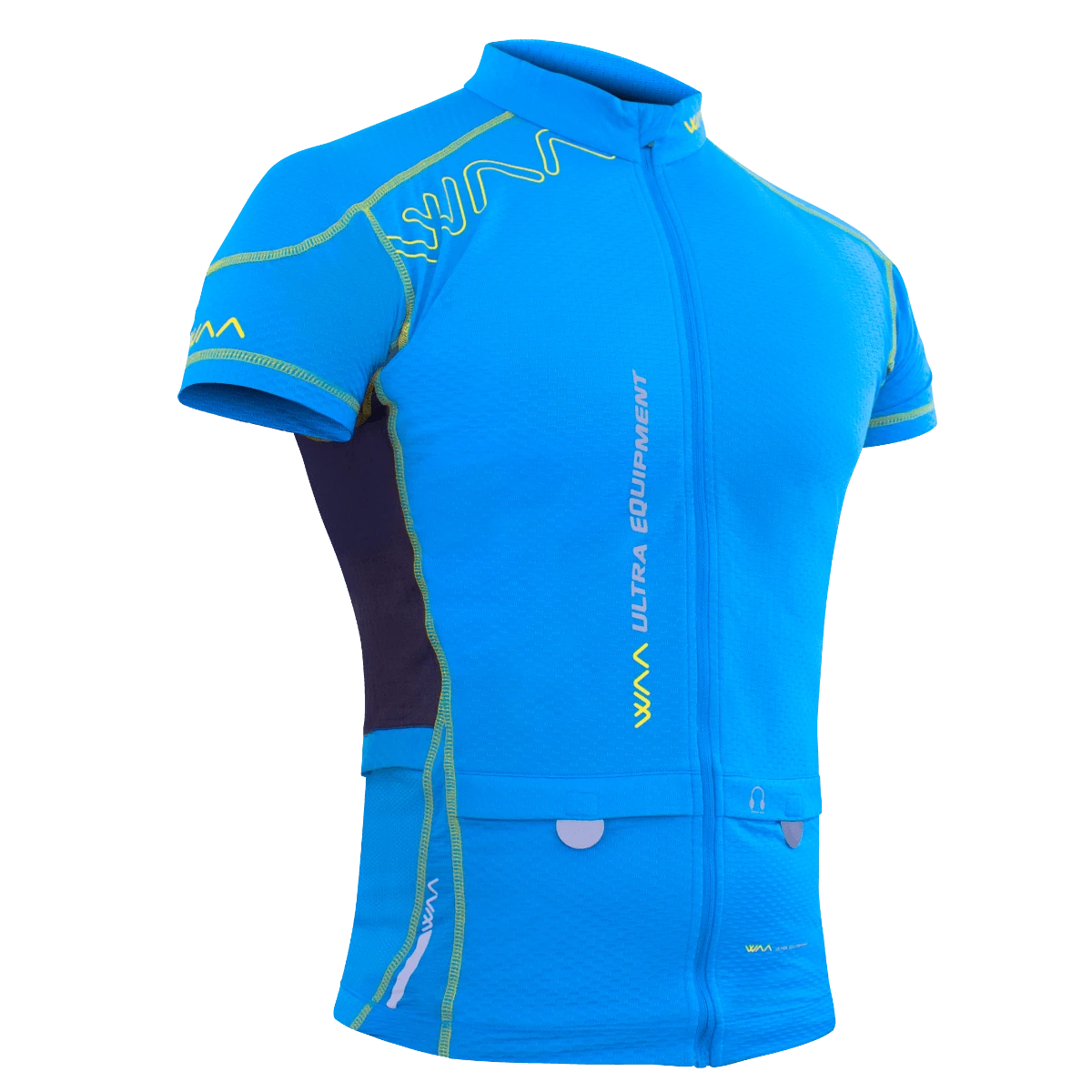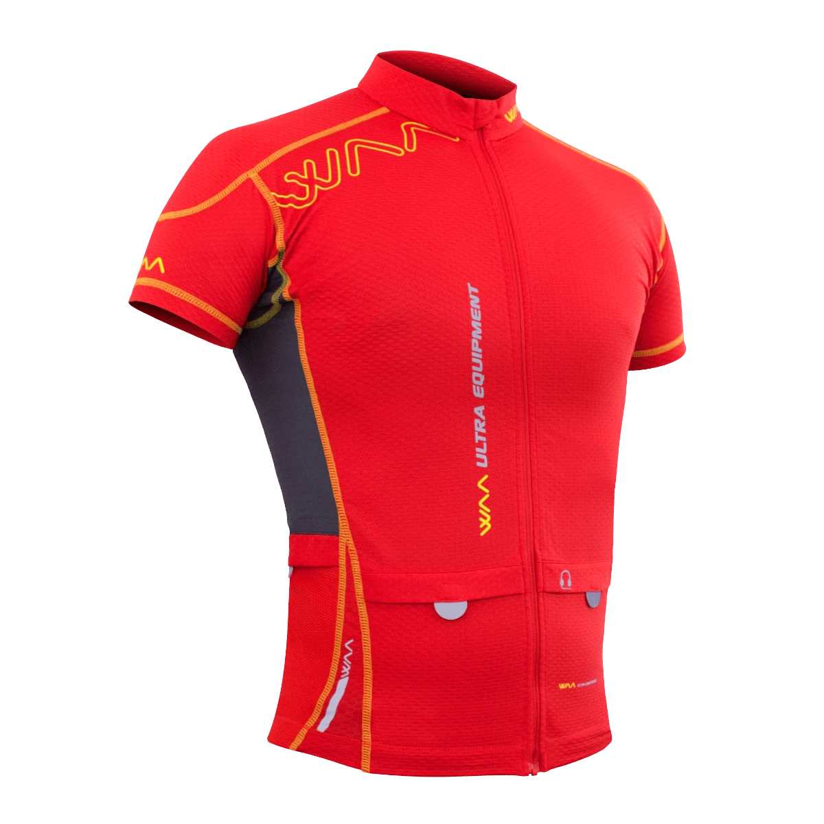 All your equipment with you without any backpack: 2 front pockets (phone, keys, energy bars) + 2 back pockets (windbreaker, flasks, gloves…)