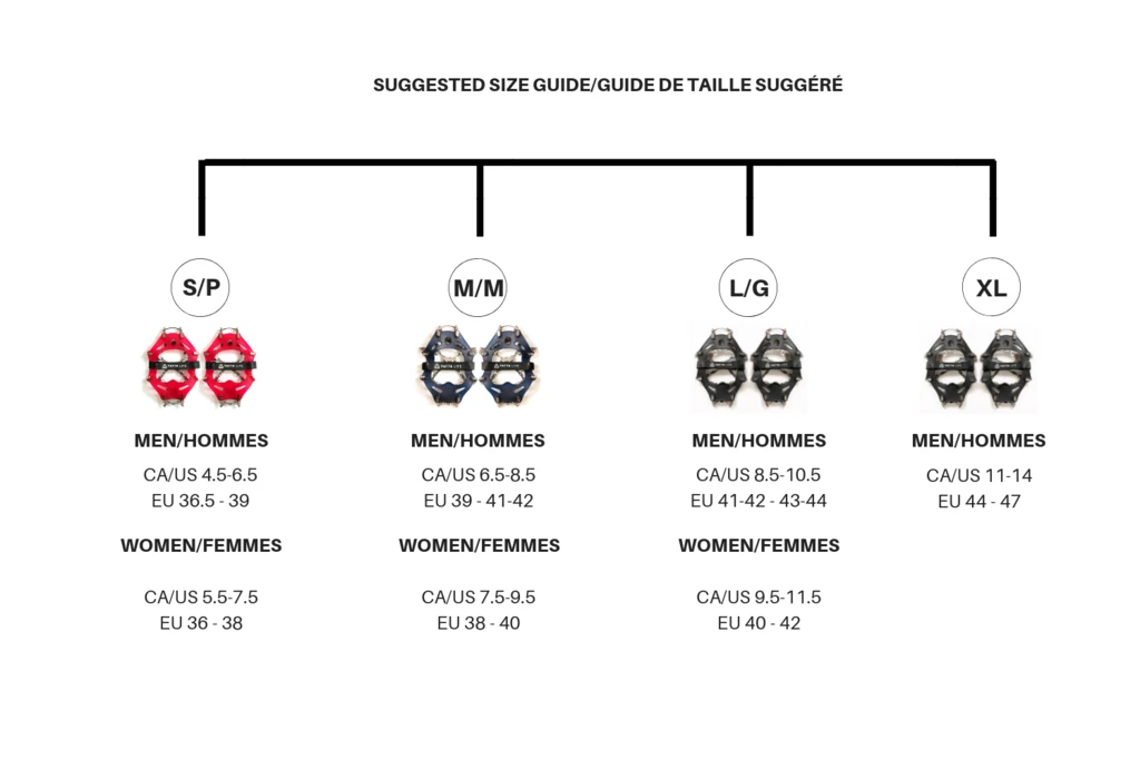 The spike design is excellent for walking, hiking, ice fishing, ice climbing, trail running on light and packed snow. Be prepared to be amazed at how much traction our crampons provide!